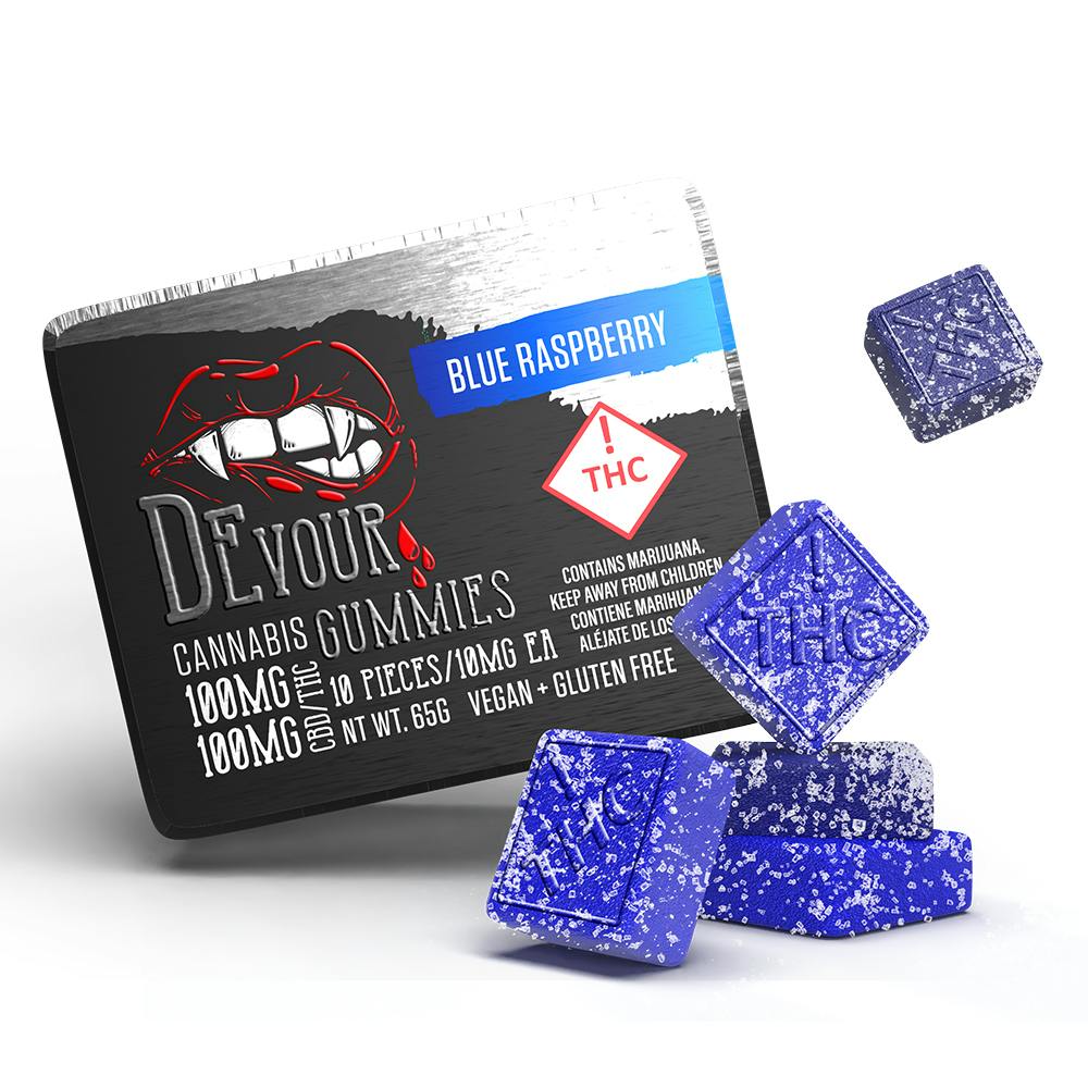 Devour - Blue Raspberry 1:1 CBD (H) - Gummies - 100mg THC / 100mg CBD